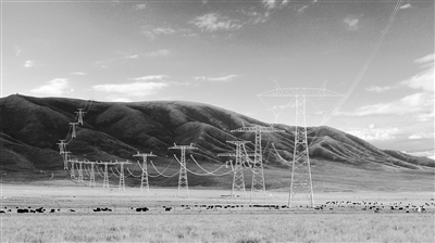图为±800千伏青豫特高压工程跨越戈壁山川将青海“绿电”源源不断送往华中地区。谢莉蓉摄