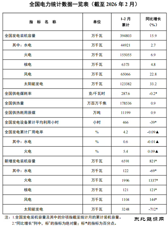 今天下午,国家能源局发布 2026 年1—2月份全国电力统计数据。