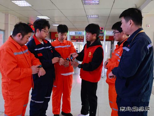 在中煤新集公司刘庄矿业井口等候区,一群职工正聚集在一起进行入井前的例行检查。手腕上的健康手表是必备的检查项目,每个人都在仔细检查各项功能的运行情况,确保电量、网络连接和设备运行正常,合格后方可入井。