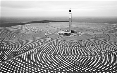 图为位于甘肃省酒泉市的金塔中光太阳能“光热+光伏”试点项目。