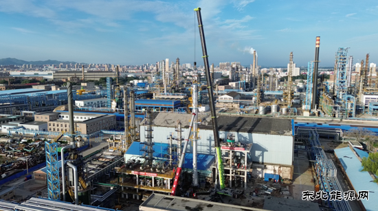 图为锦西石化尿素脱蜡装置液蜡C13分离项目吊装现场。程立新 摄