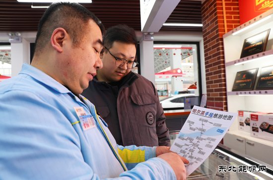 在硬件保障到位的同时,暖心服务同步升级。各加油站为自驾游客准备“哈尔滨手绘旅游地图”,加油员不仅主动介绍当地旅游特色,还会根据游客目的地,在地图上圈注最优加油站点。