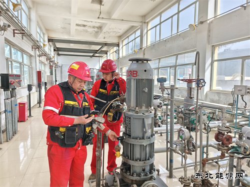 员工对运行中的机泵温度、振动及有无异响情况进行检测。尚松年 摄