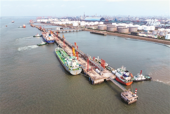 图为广西石化10万吨级码头产品装卸现场。王芳 摄