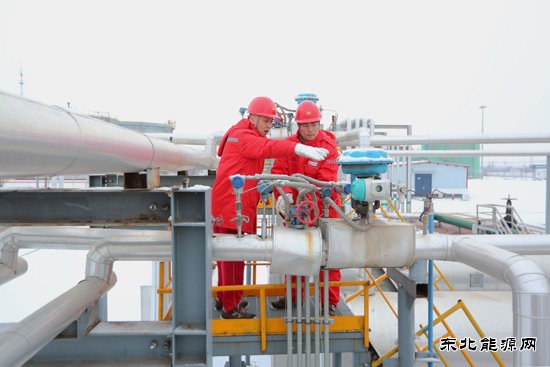 面对极寒天气,冀东油田集输系统一线岗位员工及时启动低温生产应急预案,严格执行冬季“八防”工作要求,积极开展设备电伴热系统巡查和管线低点放空、循环水加盐软化处理、原油储罐平衡液位、天然气管线加注甲醇等现场施工作业,确保天然气处理装置、输送装置安全高效运行,为今冬明春天然气保供奠定了坚实基础。(杨军/文 王翔/摄)