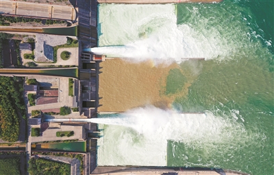 深黄色的河水夹杂着泥沙,从小浪底大坝上的数个孔洞奔涌而出,响声震天。这是小浪底水库调水调沙的真实场景。