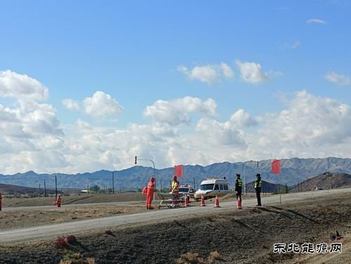3.联合抢险作业:在现场联合指挥部的统一调度下,双方人员各司其职、紧密配合:阿勒泰执法支队青河执法大队的执法人员负责维护现场秩序,疏导滞留车辆,确保抢险人员绝对安全。阿勒泰公路事业发展中心青河养护所的抢险队伍立即投入抢通战斗。操作手驾驶机械设备紧张有序地对水毁路段进行回填加固,在路基塌方处放置钢筋笼、填放石块、回填路基土方、整修路肩边坡。