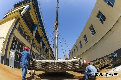 图为技术人员正在吊装空气冷却器。王英刚 摄