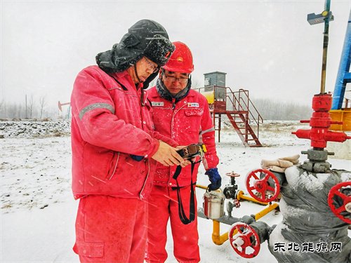 中国石油网消息 年末岁尾,辽河油田油区迎来大范围强降雪,气温骤降至零下15摄氏度。面对极端天气考验,辽河油田沈阳采油厂一线干部员工坚持“战风雪、上产量、稳安全、抢进度”,迅速进入“严寒攻坚模式”。他们顶风冒雪,积极开展井站井场积雪清扫、设备防冻维护和现场安全管控等工作。他们加密岗位巡检频次,重点排查保温设施完好性、管线防冻措施落实情况及关键设备运行状态,全力确保生产节奏不滞后、设备运转不停歇、措施作业有序推进,坚决打赢采油管理、生产运行、措施优化“三大攻坚战”。(周洁 摄)