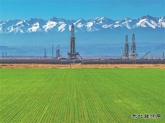 中国石油网消息 4月20日,春日的准噶尔盆地,万顷麦苗铺展如绿海,新疆吉木萨尔国家级陆相页岩油示范区内,钻井铁塔巍然矗立。
