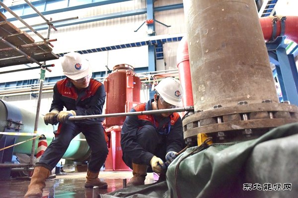 5月19日,中海石油气电集团有限责任公司福建LNG(液化天然气)接收站(下称福建LNG)现场,两名党员在检修电动消防泵。