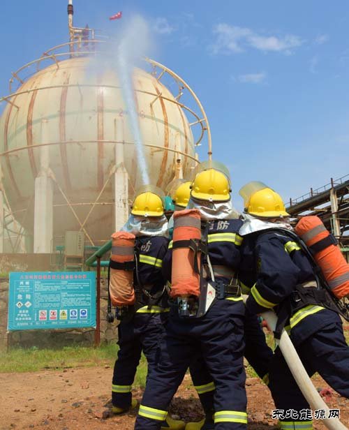航锦科技在开展丙烯球罐泄漏事故应急救援演练