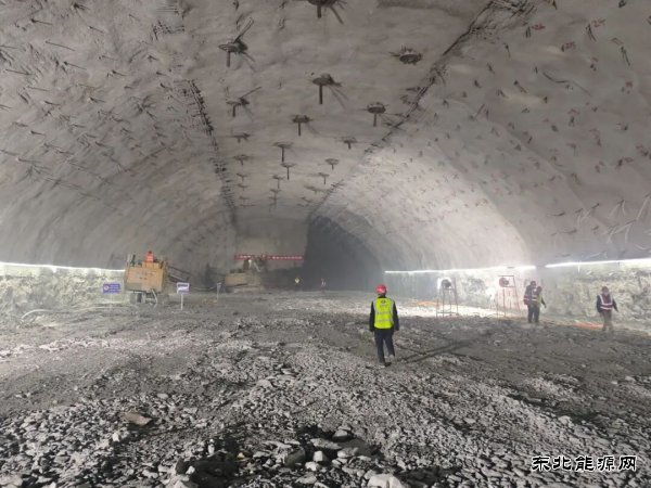 电站地下厂房施工区域地质条件复杂,施工难度和安全风险较大。肃南公司团结带领各参建单位,迎难而上、聚力攻坚,坚持“稳扎稳打、支护先行”原则,采用“中导洞先行、上下游边墙分步扩挖”的施工方法,综合运用超前地质预报、微震监测等信息化手段,实现智能化监控与精准施工,有效管控围岩失稳等施工风险。同时构建“锚固洞+对穿锚索+系统锚杆+钢筋拱肋+预应力锚杆+挂网喷护”复合支护体系,实现围岩表层稳固与深层锚固的双重防护,全力保障地下厂房施工的安全与质量。