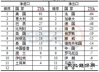 美国是最大的电力净进口国,法国是最大的净出口国。