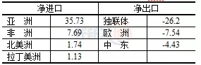 根据《EnerData:Global EnergyStatistical Yearbook 2016》的统计,净进口最多的地区是亚洲,净出口最多的地区是独联体。