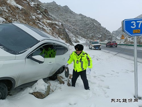 富蕴执法大队:游客车辆陷入雪窝 交通执法暖心救助